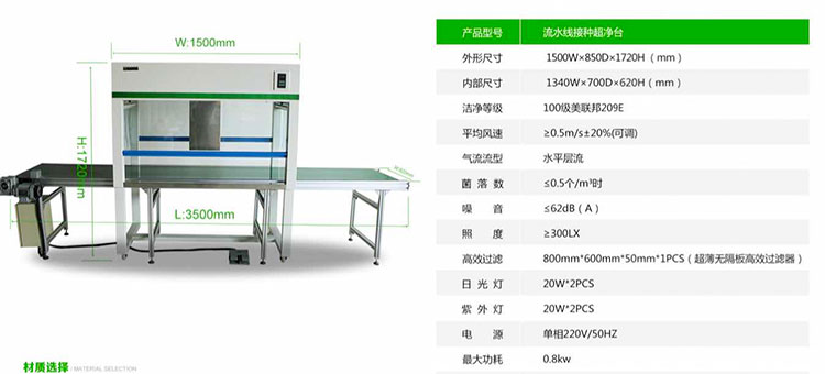 一半以上的客戶選擇食用菌專用流水線接種超凈工作臺,它有怎樣的優勢呢?1、食用菌專用流水線接種超凈工作臺設備總長為:3500*620*1720,其中超凈工作臺的尺寸為:1500mm*800mm*1720mm,這樣設計的原因是為了更好的適用食用菌生產工藝的流程。2、食用菌專用流水線接種超凈工作臺采用軟觸點控制面板開關,三擋調速。3、皮帶末端裝有光電感應,已接種好的菌種不易滑落至地面。4、設備內有紫外線和照明燈,開關獨立控制。5、200W國產渦輪蝸桿電機,速比:1:10,變頻調速,速度2-6 m/min。6、單間輸送產品4KG/件。7、流水線采用電柜箱控制,分為腳踏按鈕和手動按鈕開關控制,設計更人性化。8、皮帶寬度530mm,厚度2mm,綠色防靜電皮帶,皮帶托采用304不銹鋼滾筒。